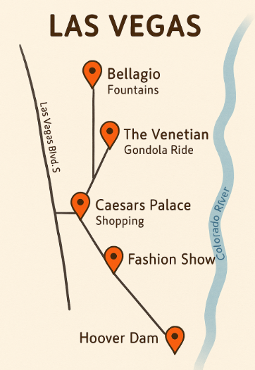 - 오후: 라스베이거스 도착 → 스트립 중심 호텔 체크인