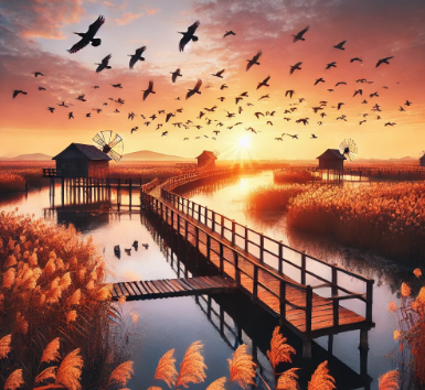 해 질 무렵, 붉게 물드는 하늘과 갈대밭 사이에 우뚝 솟은 풍차가 어우러지는 장면은 영화 속 한 장면처럼 몽환적인 분위기를 만들어줍니다. 일몰 시간대 방문하면 햇빛이 풍차 뒤로 떨어지며 붉은 실루엣을 만들어내는 순간을 볼 수 있어요.